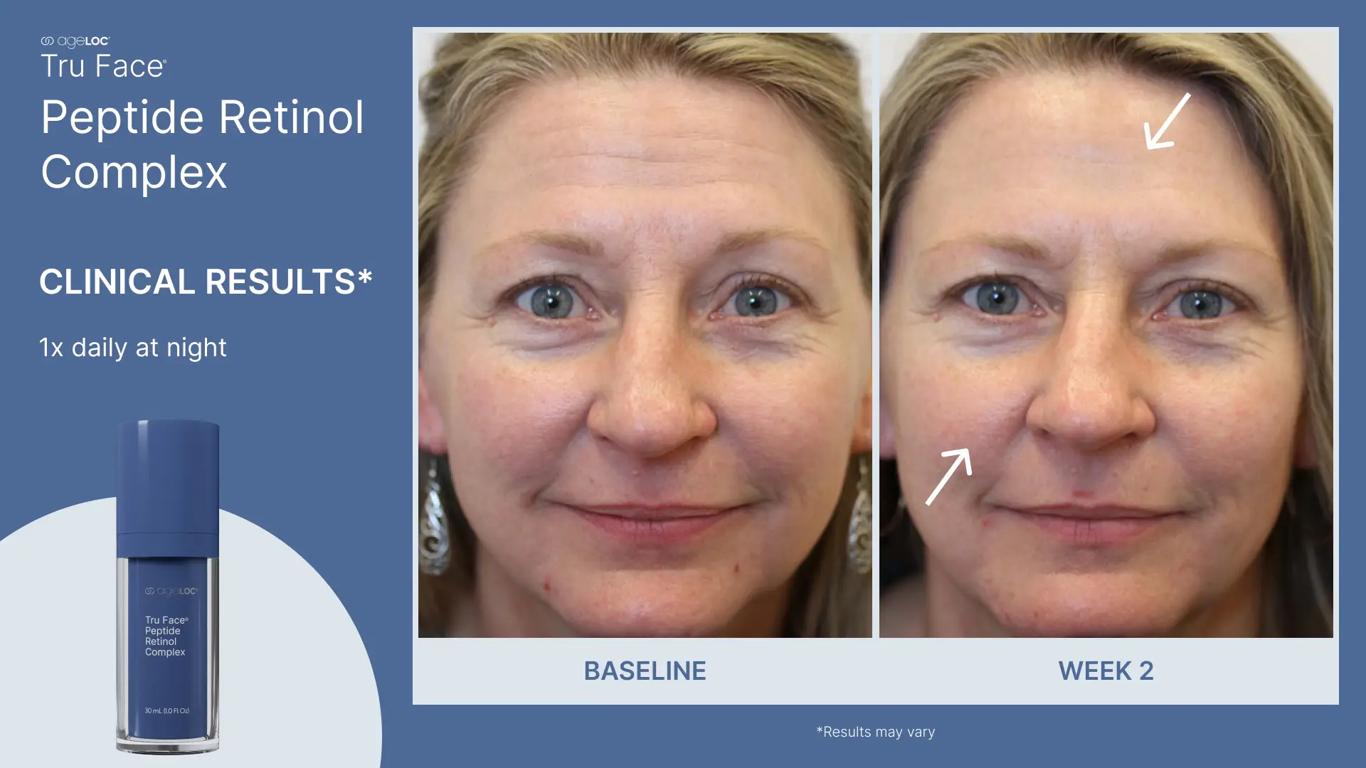 Ten niezwykle skuteczny, wielozadaniowy produkt, opracowany w oparciu o naszą technologię ageLOC oraz zawierający duet peptydu zidentyfikowanego przez AI i kompleksu retinolu, zapewnia efekty już po 7 dniach, przy czym jego formuła jest niezwykle delikatna.